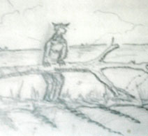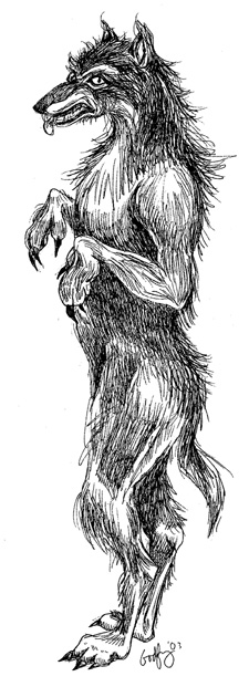 Greetings and welcome to the Main Lair of the Manwolf, also known as The Beast of Bray Road, Dog Man, Man Dog, or Werewolf. To the left is the artwork seen round the world, the original”kneeling roadkill” sketch I did for The Week, a now defunct newspaper based in Delavan, Wisconsin,Dec. 29 1991. At the time, I considered “The Beast of Bray Road” sort of a throwaway story for a slow news week. But the article inspired many people to come forward and say they had seen the same thing, and not always recently. Some of the sightings in the Bray Road area were up to ten years earlier, with one possibly related event about 40 miles away in Jefferson County dating back to 1936.