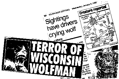 Twenty-four years and hundreds of sightings later, four of my 16+ published books are dedicated to sightings of this and similar upright canines reported nation-and-world-wide. But that first story showed that something big, hairy and wolfish roamed the country roads and woods of Walworth, Jefferson and Racine Counties. The first witnesses to come forward publicly saw the creature on or